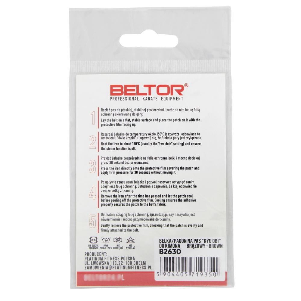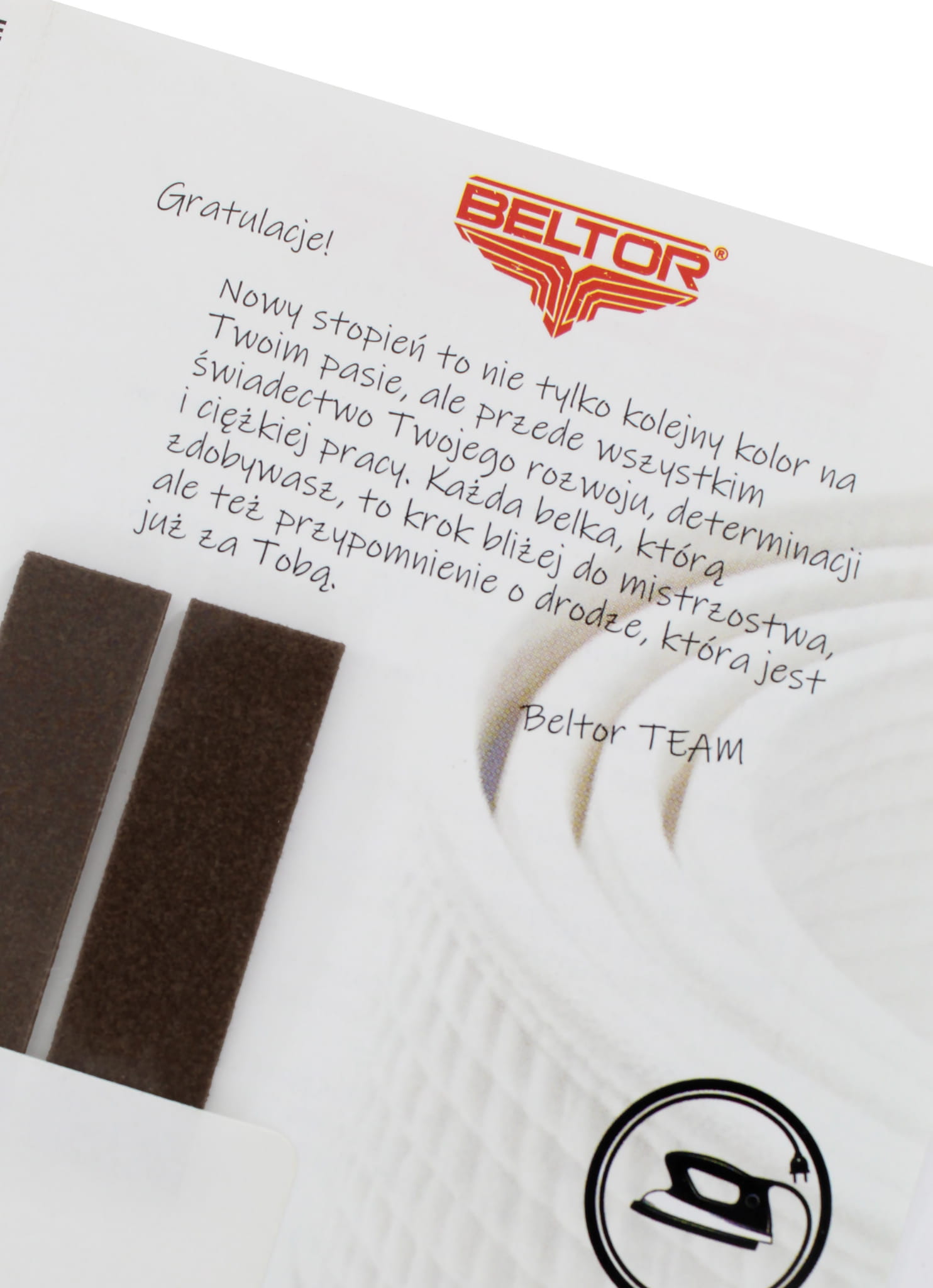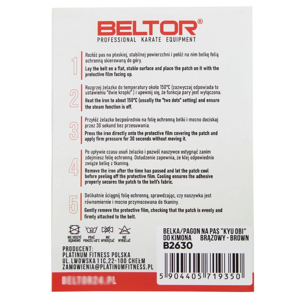 Belki na Obi Beltor to gotowe rozwiązanie na szybkie zamocowanie belki na pasie do kimono! Opakowanie zawiera 2 belki, do naprasowania z przodu i tyłu pasa lub obok siebie. Materiał belki jest bardzo przyjemny w dotyku i przypomina zamsz. Po naprasowaniu jest lekko wypukła i ma piękny żywy kolor. Po aplikacji belka jest trwale związana z materiałem. Można prać w pralce - w temperaturze poniżej 60'C.