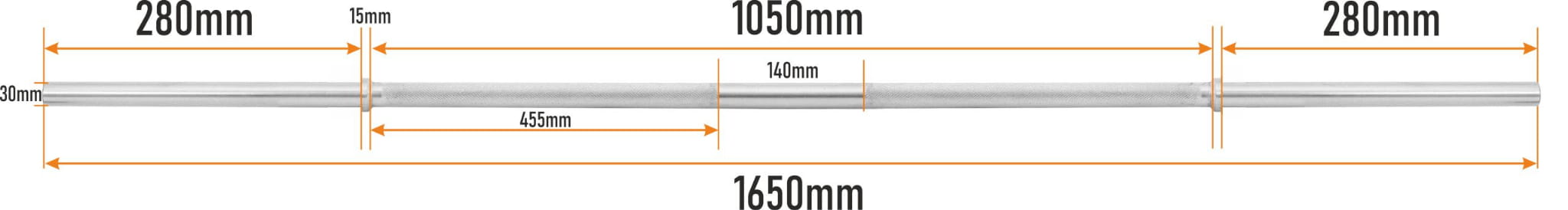 Gryf prosty gładki 165cm / 30mm bez zacisków - HRD System
