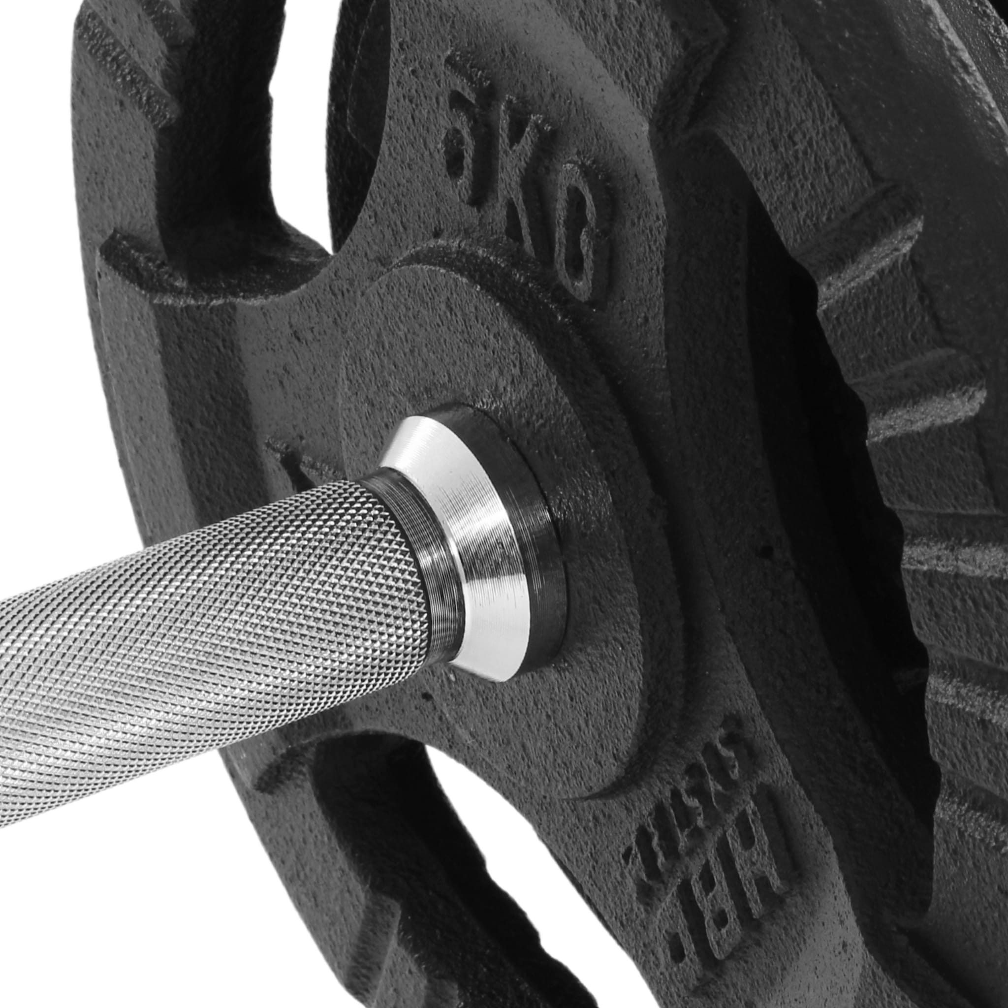 Hartowany gryf prosty o bardzo wysokiej jakości wykonania zapewnia doskonałe trzymanie w dłoniach dzięki nacięciom części chwytnej oraz bardzo długą eksploatację, a zaciski zapewniają komfort i bezpieczeństwo podczas użytkowania oraz szybką i wygodną zmianę obciążeń.