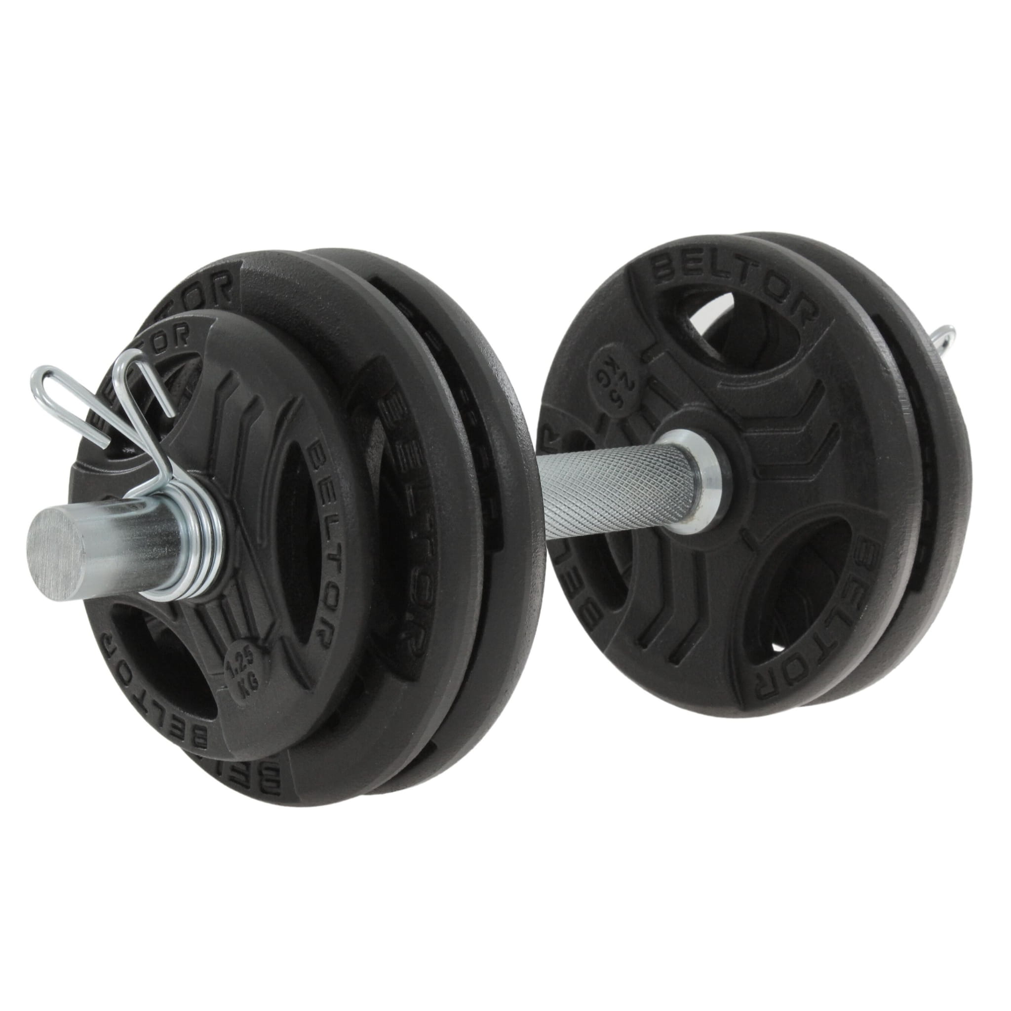 Regulowana hantla żeliwna 15kg + zaciski sprężynowe - Beltor
