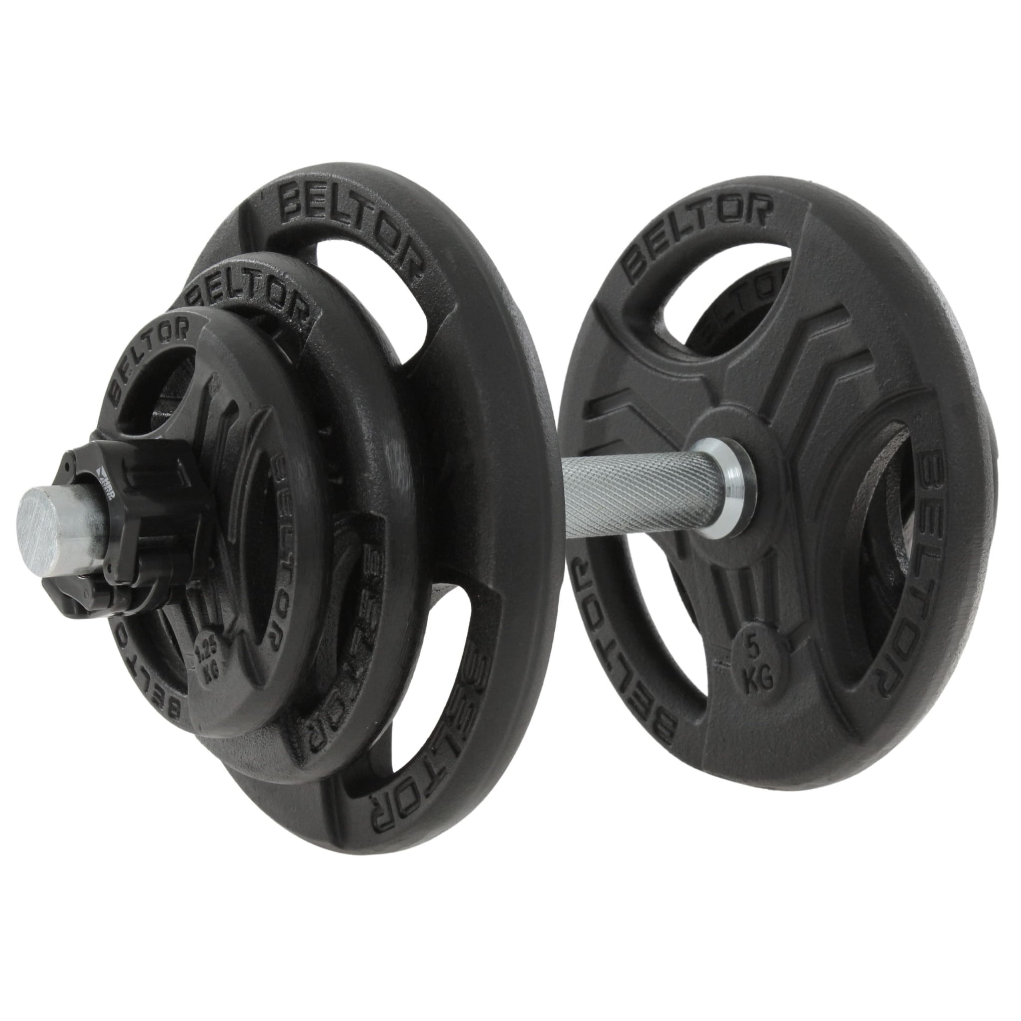 Regulowana hantla żeliwna 20kg + zaciski szczękowe czarne - Beltor