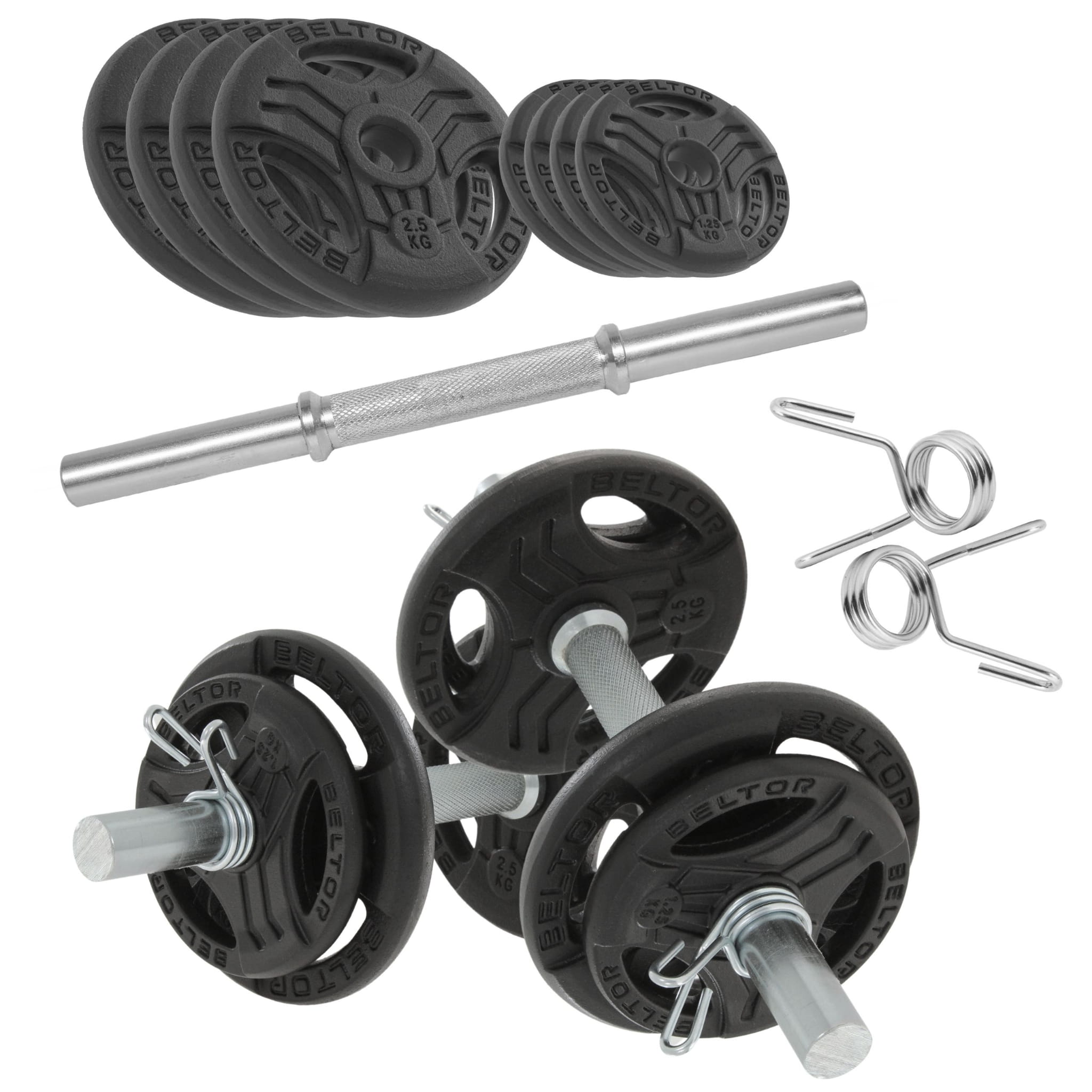 Regulowane hantle żeliwne 2x10kg + zaciski sprężynowe - Beltor