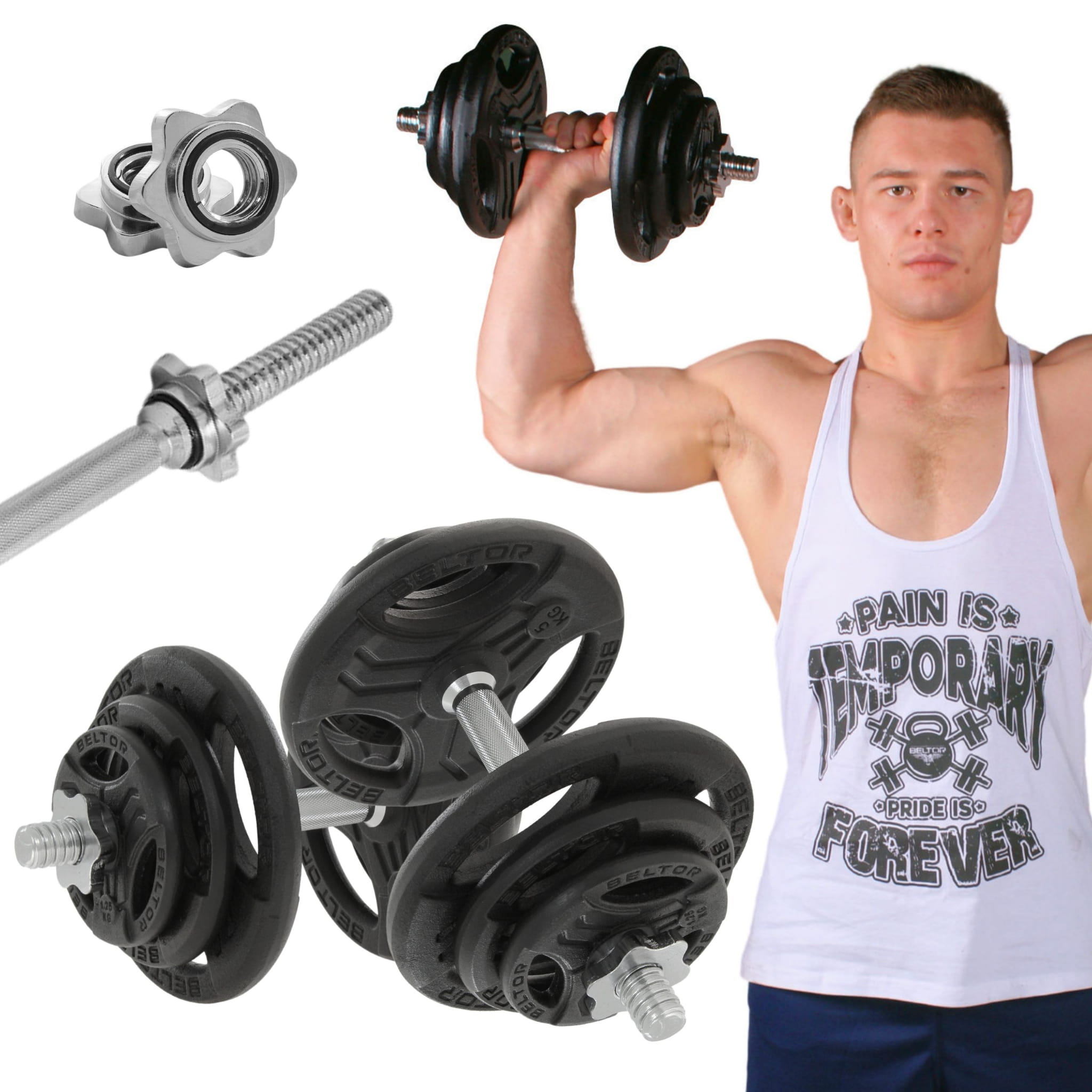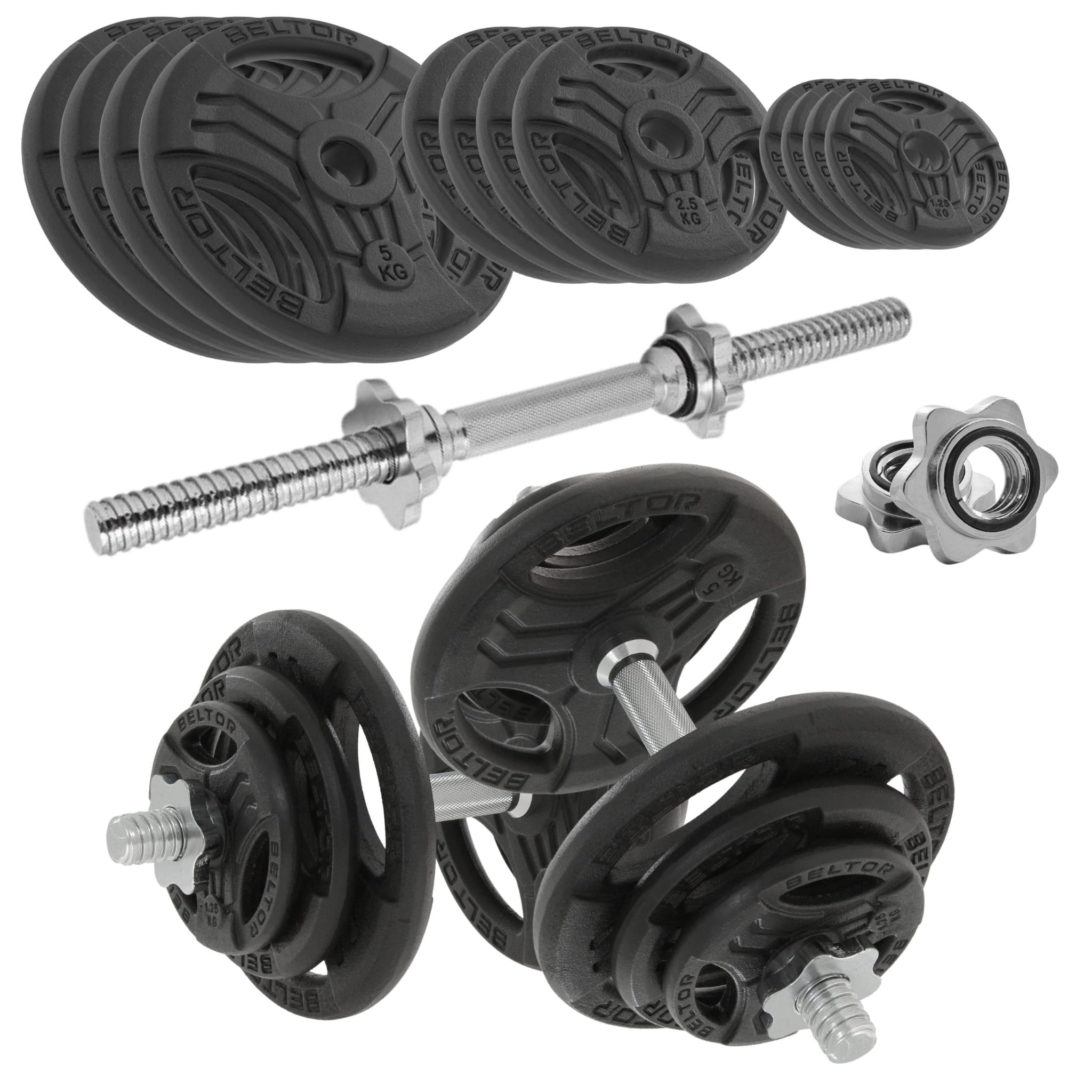 Regulowane hantle żeliwne 2x20kg + zaciski - Beltor