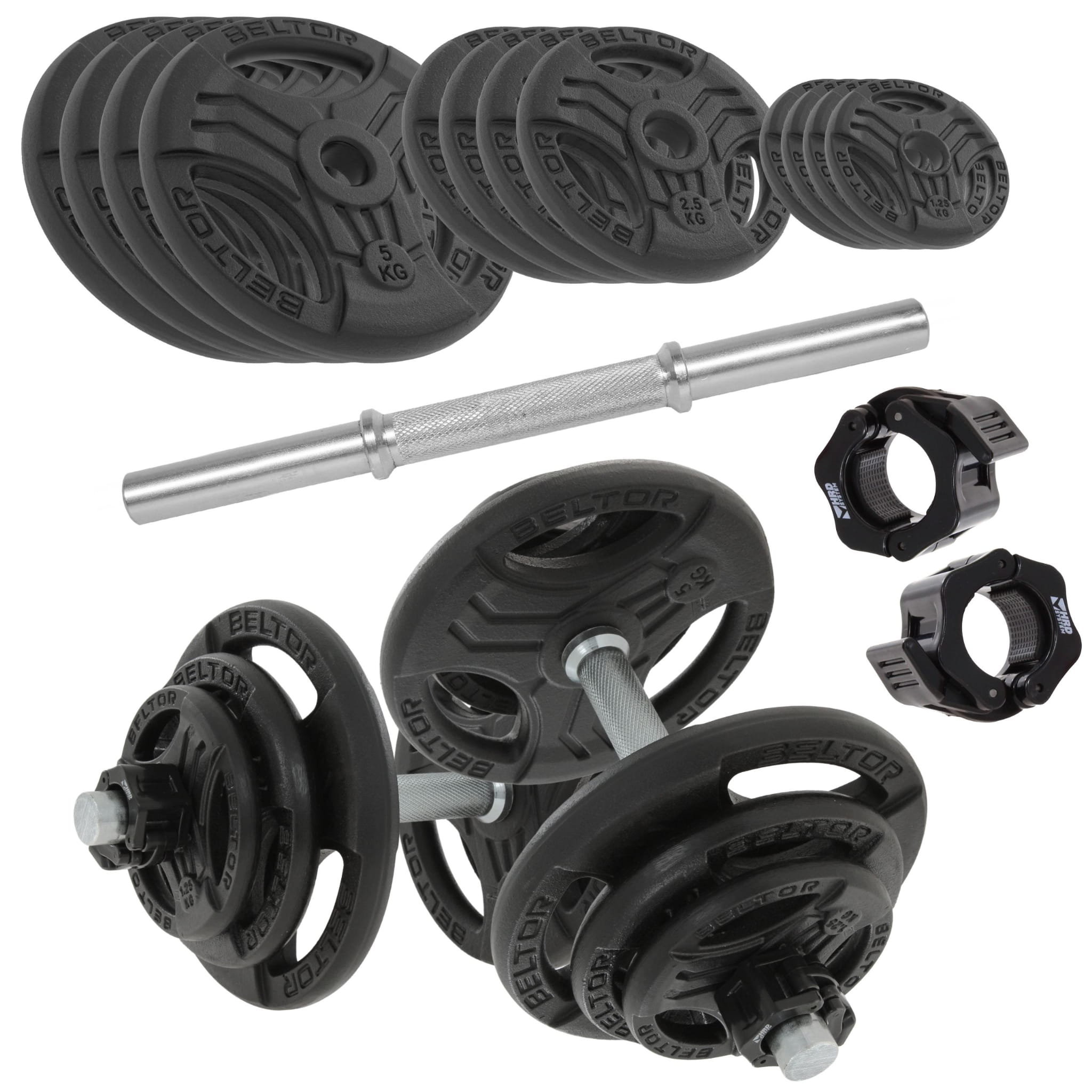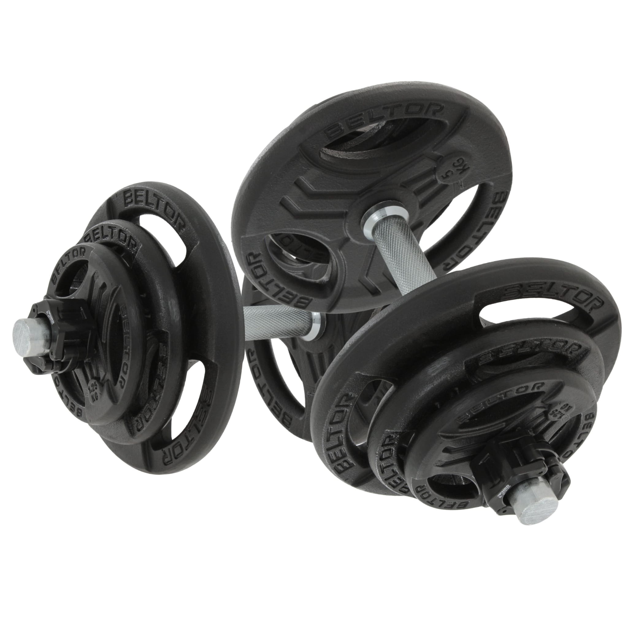 Regulowane hantle żeliwne 2x20kg + zaciski szczękowe czarne - Beltor