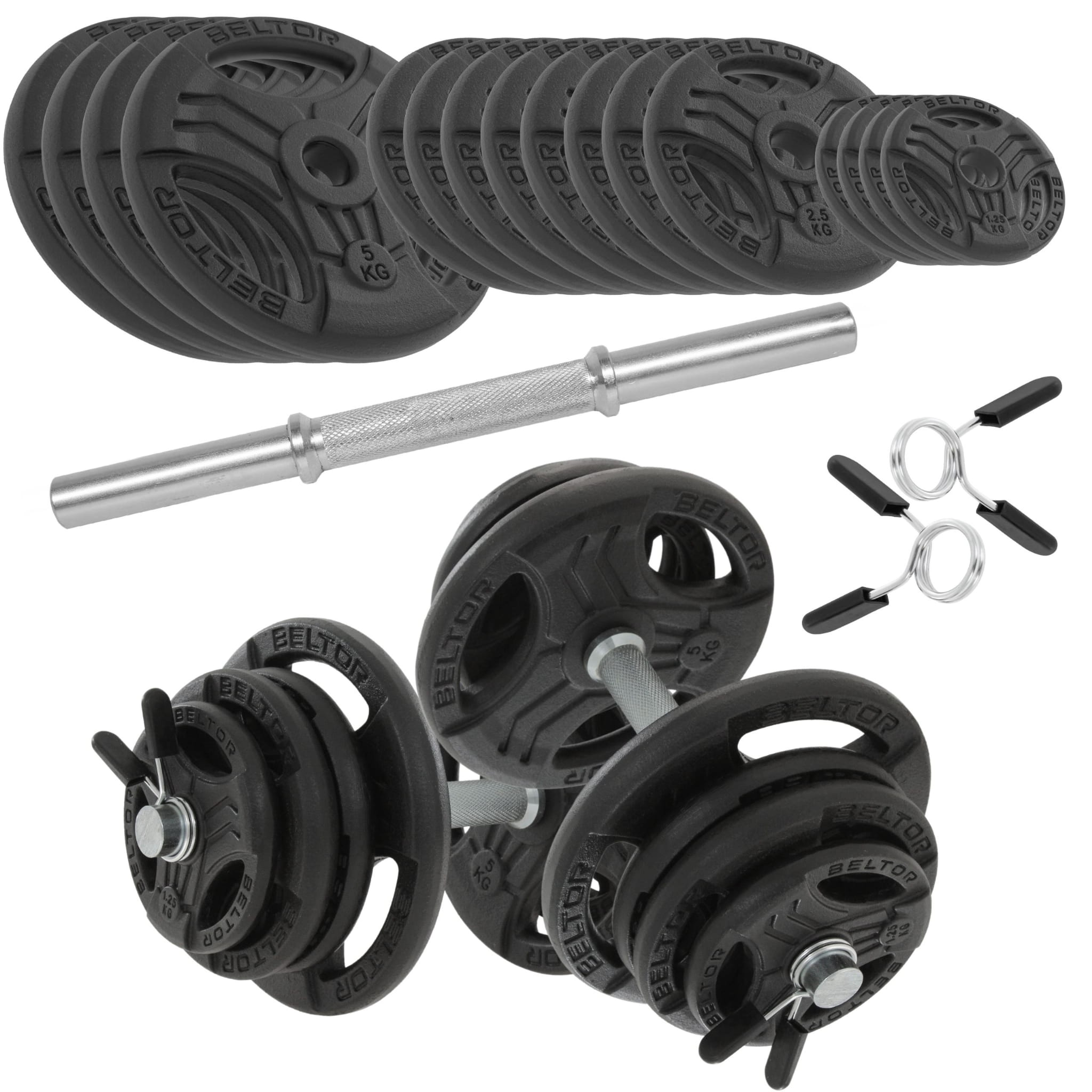 Regulowane hantle żeliwne 2x25kg + zaciski motylkowe czarne - Beltor