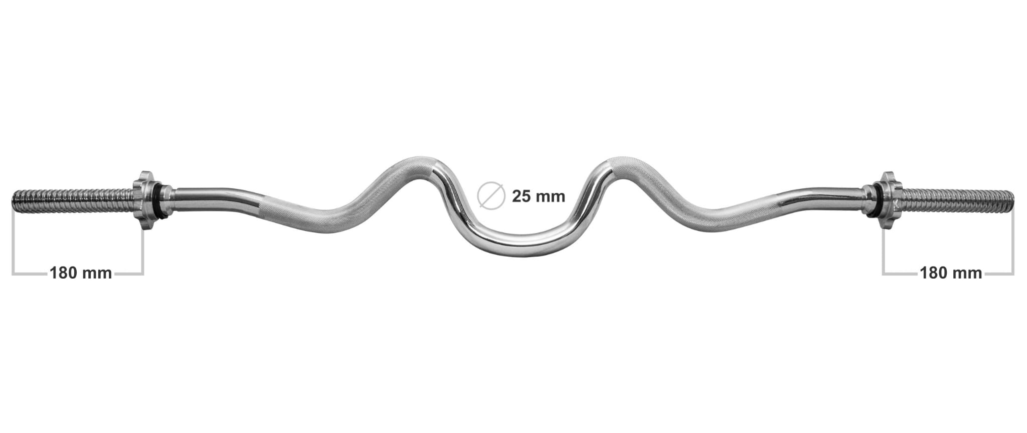 Hartowany gryf łamany mocno przeznaczony do ćwiczeń górnych partii mięśni wykonany ze stali hartowanej, zapewniający doskonałe trzymanie w dłoniach dzięki nacięciom części chwytnej oraz bardzo długą eksploatację. Zaciski śrubowe zapewniają komfort i bezpieczeństwo podczas użytkowania oraz szybką i wygodną zmianę obciążeń.