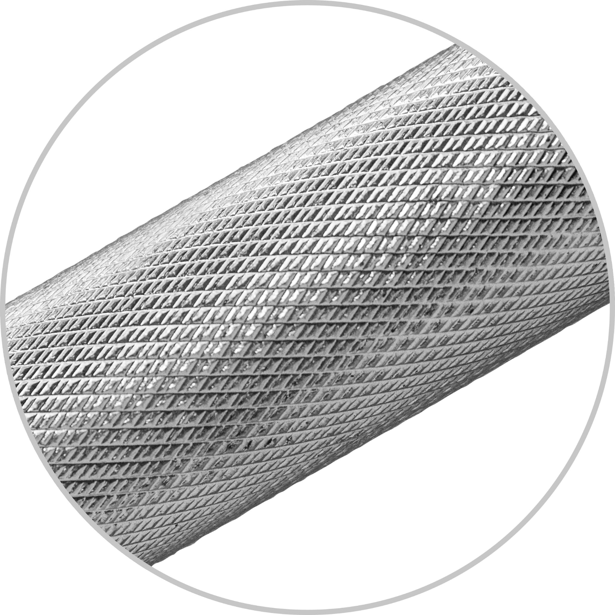 Hartowany gryf prosty firmy Platinum Fitness o bardzo wysokiej jakości wykonania zapewnia doskonałe trzymanie w dłoniach dzięki nacięciom części chwytnej oraz bardzo długą eksploatację, a zaciski śrubowe zapewniają komfort i bezpieczeństwo podczas użytkowania oraz szybką i wygodną zmianę obciążeń.
