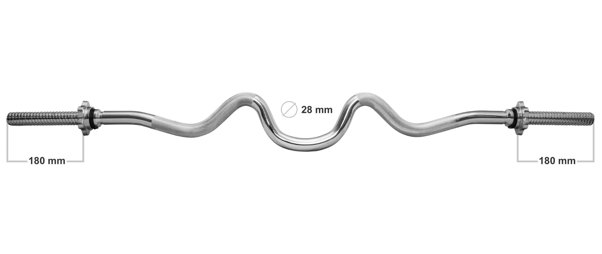 Hartowany gryf łamany podwójnie firmy Platinum Fitness o bardzo wysokiej jakości wykonania zapewnia doskonałe trzymanie w dłoniach dzięki nacięciom części chwytnej oraz bardzo długą eksploatację, a zaciski śrubowe zapewniają komfort i bezpieczeństwo podczas użytkowania oraz szybką i wygodną zmianę obciążeń