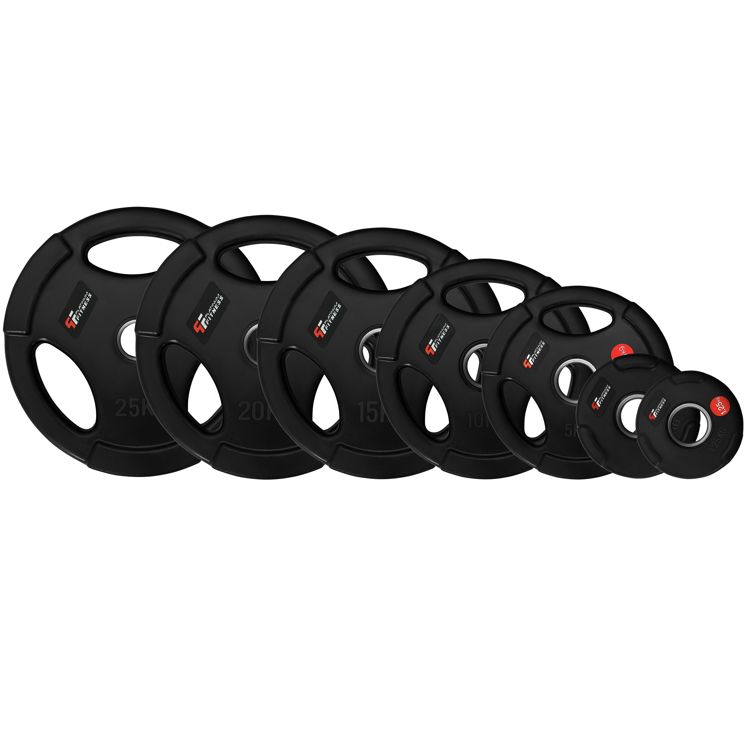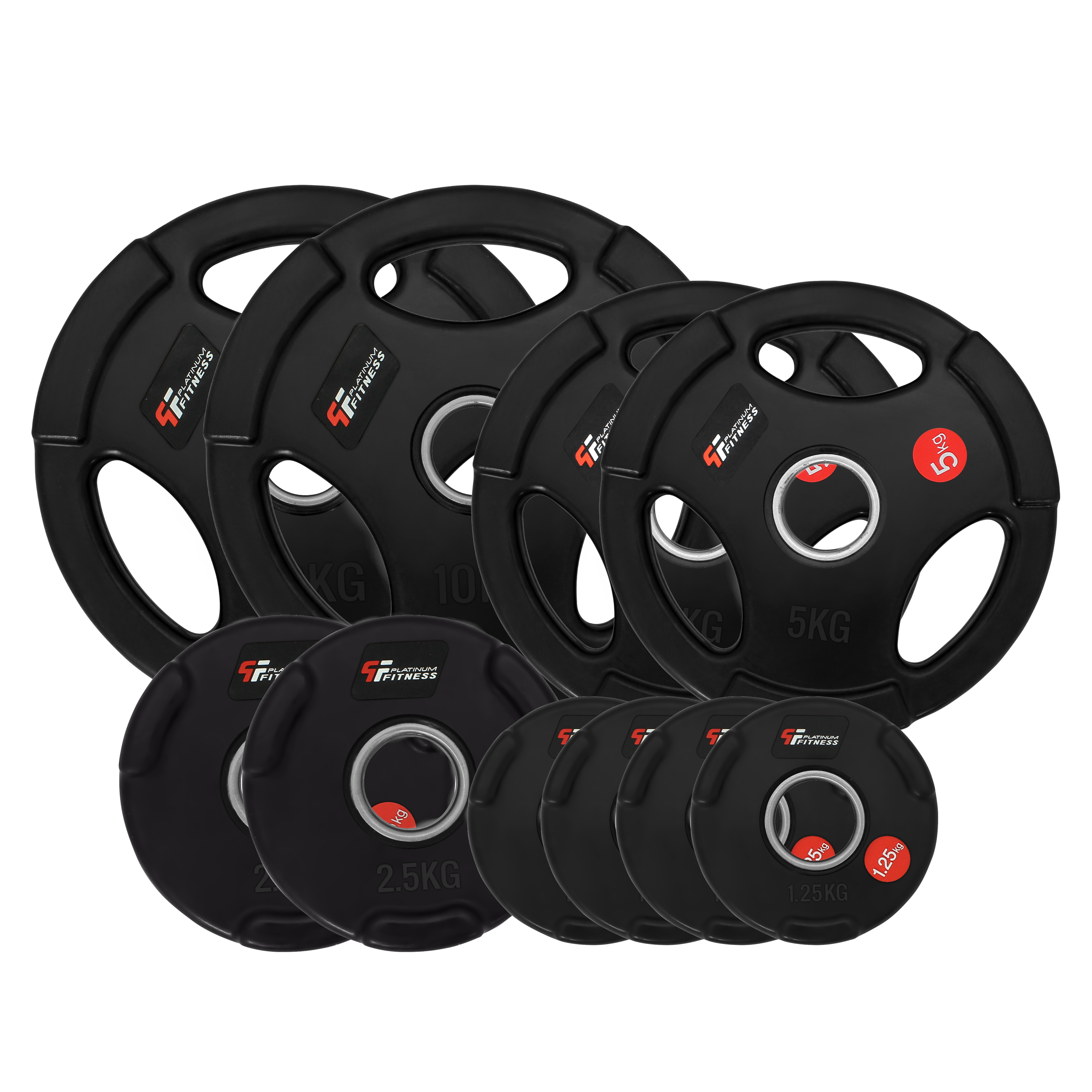 Obciążenie olimpijskie z uchwytami jest starannie wykonanym obciążeniem, które dzięki specjalnym otworom może być z powodzeniem używane zamiast sztangielek. Dzięki takiemu rozwiązaniu można także szybko zmieniać obciążenie na sztandze lub gryfie. Obciążenie zostało zabezpieczone warstwą gumy, która chroni je przed działaniem czynników zewnętrznych oraz tłumi dźwięk uderzenia. Dzięki żeliwu z jakiego zostało wykonane oraz przeznaczeniu do sztang olimpijskich ma ono szczególne zastosowanie w siłowniach profesjonalnych. W części roboczej obciążenia został umieszczony specjalny pierścień wykonany ze stali nierdzewnej odpornej na działanie czynników zewnętrznych.