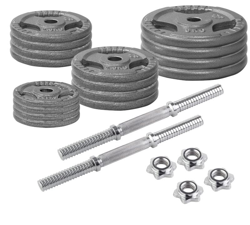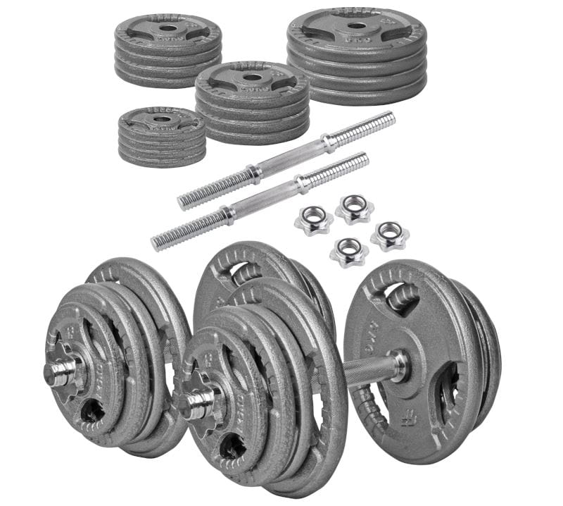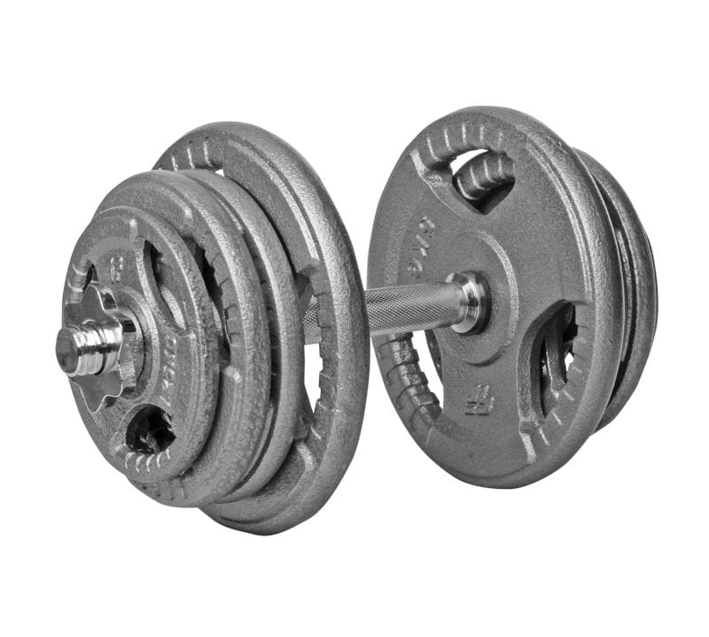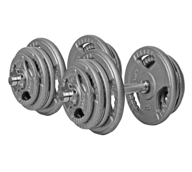 W skład zestawu wchodzą żeliwne talerze o odpowiednio dobranej masie, dzięki czemu wykonując ćwiczenia użytkownik ma możliwość dostosowania obciążenia do rodzaju treningu (rzeźba/masa) oraz możliwości psychofizycznych.