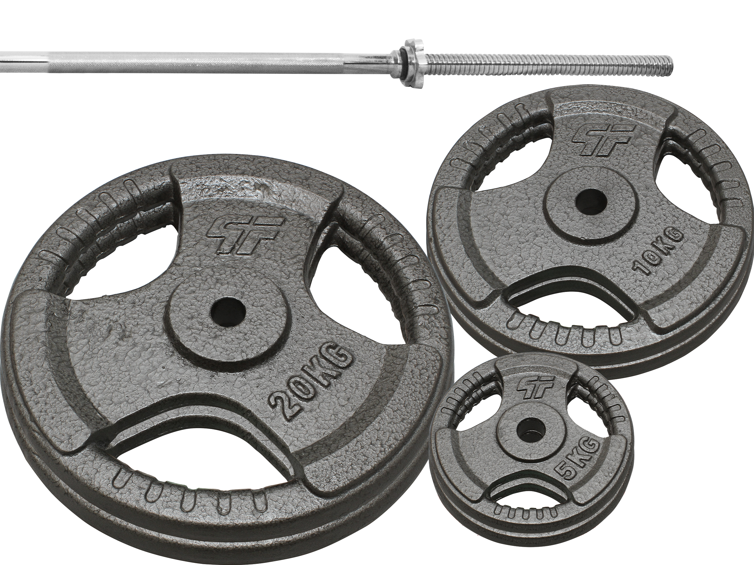 Zestaw obciążenie żeliwne 80kg (2x20, 2x10, 2x5kg) 29mm + gryf prosty 180cm