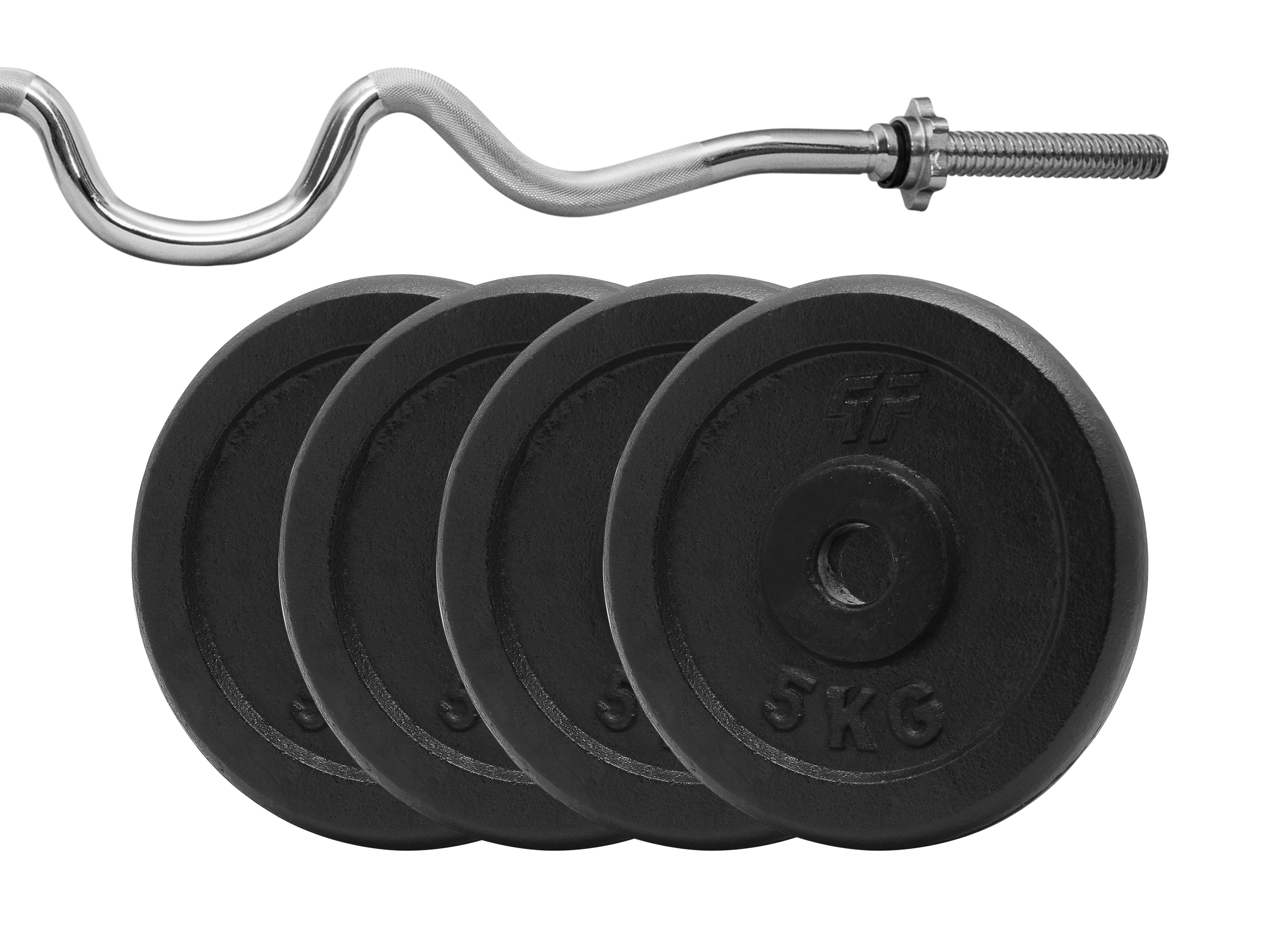 Zestaw obciążenie żeliwne pełne 26kg (4x5kg) 29mm + Gryf max łamany