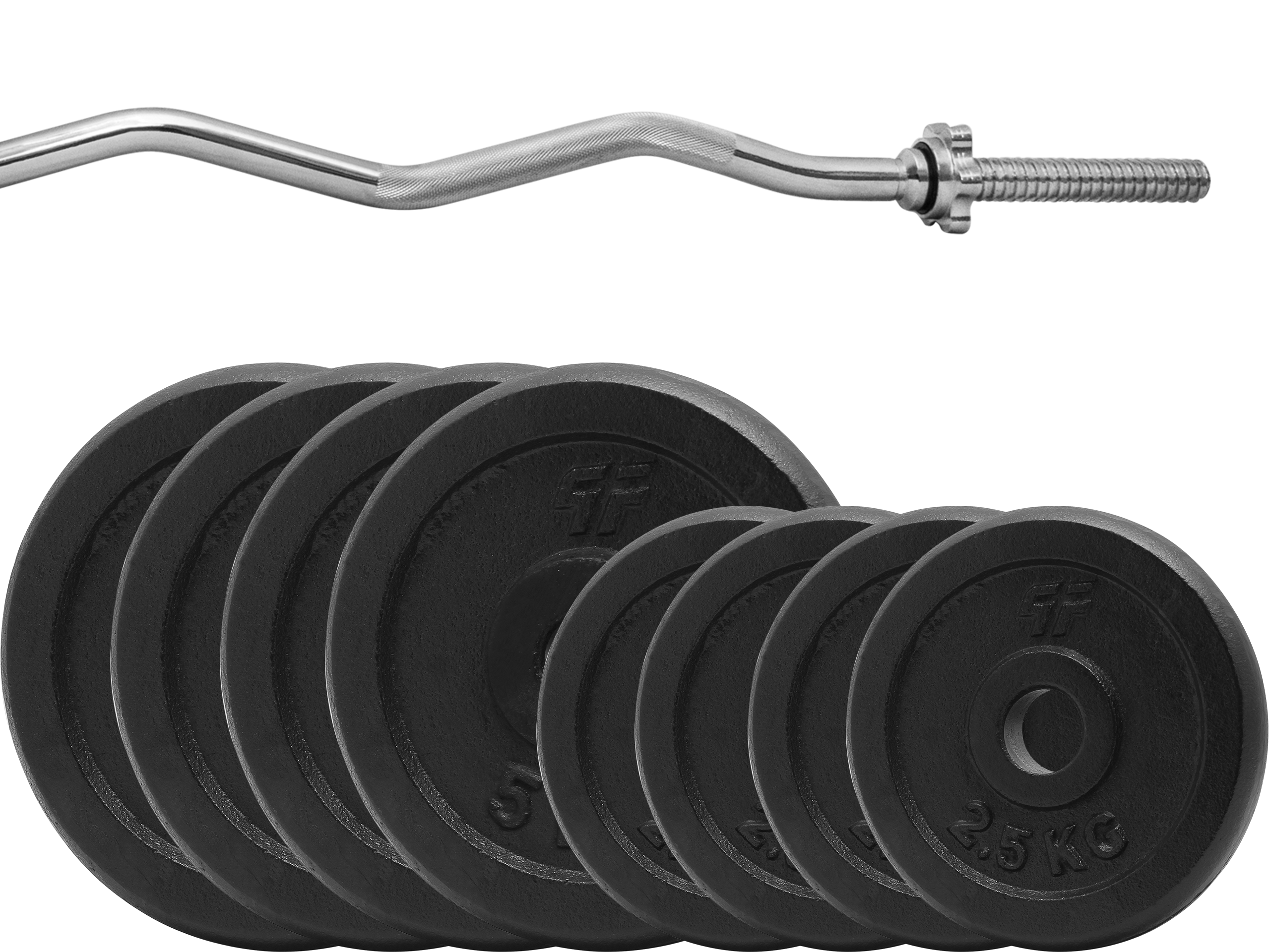Zestaw obciążenie żeliwne pełne 36kg (4x5kg, 4x2,5kg) 29mm + Gryf lekko łamany