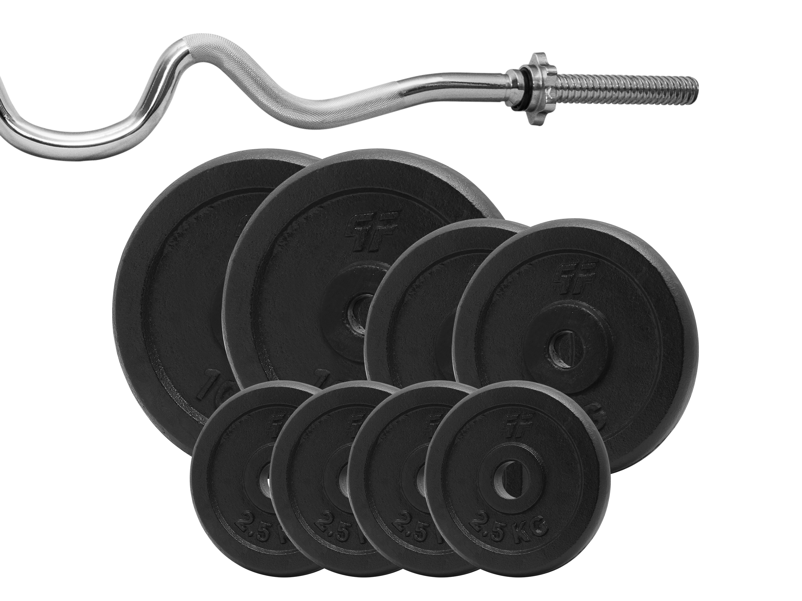Zestaw obciążenie żeliwne pełne 46kg (2x10kg, 2x5kg, 4x2,5kg) 29mm + Gryf max łamany