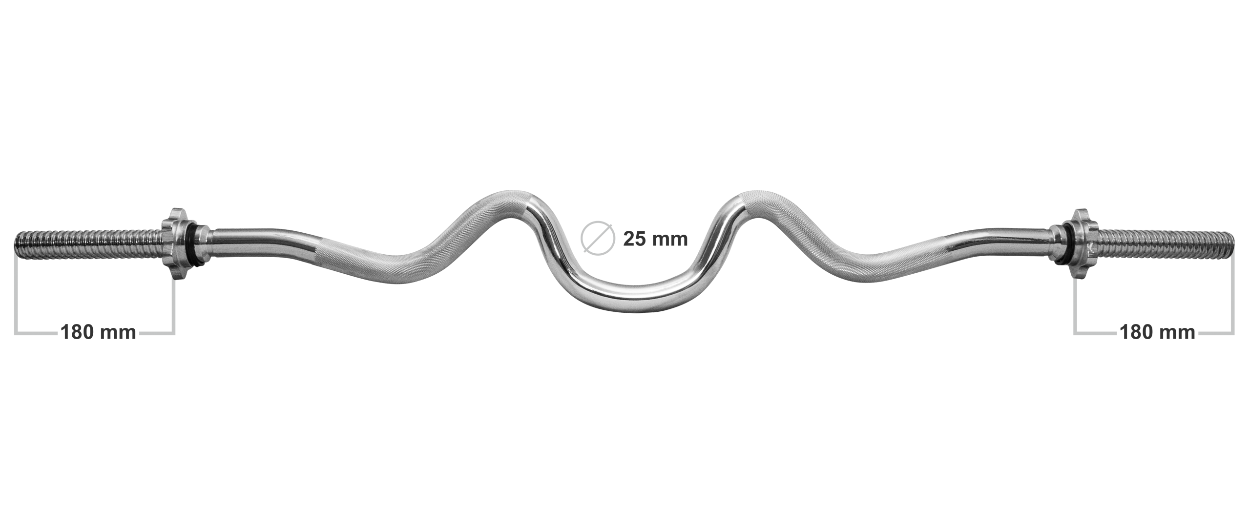 Hartowany gryf łamany podwójnie firmy Platinum Fitness o bardzo wysokiej jakości wykonania zapewnia doskonałe trzymanie w dłoniach dzięki nacięciom części chwytnej oraz bardzo długą eksploatację, a zaciski śrubowe zapewniają komfort i bezpieczeństwo podczas użytkowania oraz szybką i wygodną zmianę obciążeń.