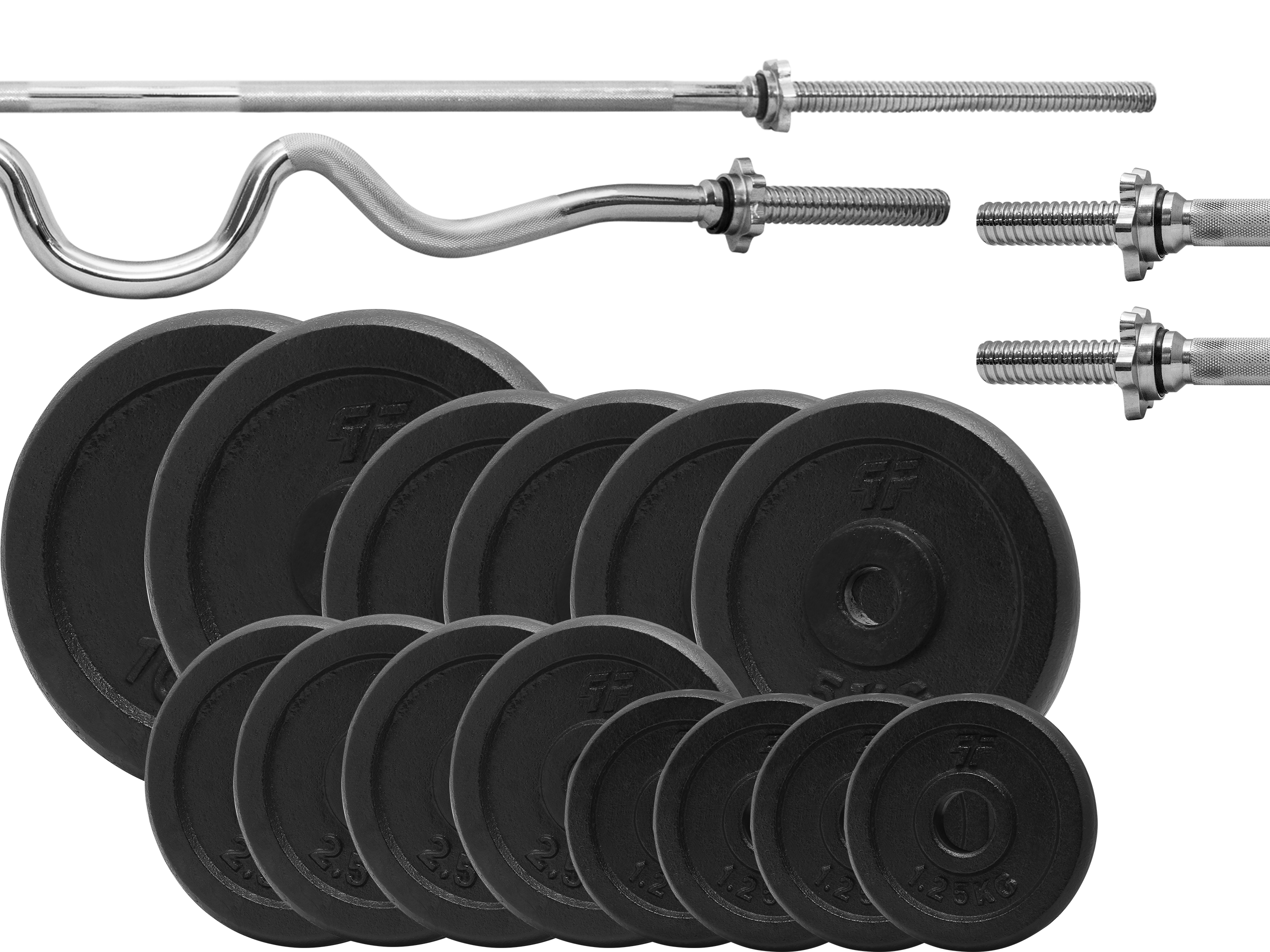 Zestaw obciążenie żeliwne pełne 75kg (2x10kg, 4x5kg, 4x2,5kg, 4x1,25kg) 29mm + 4 Gryfy