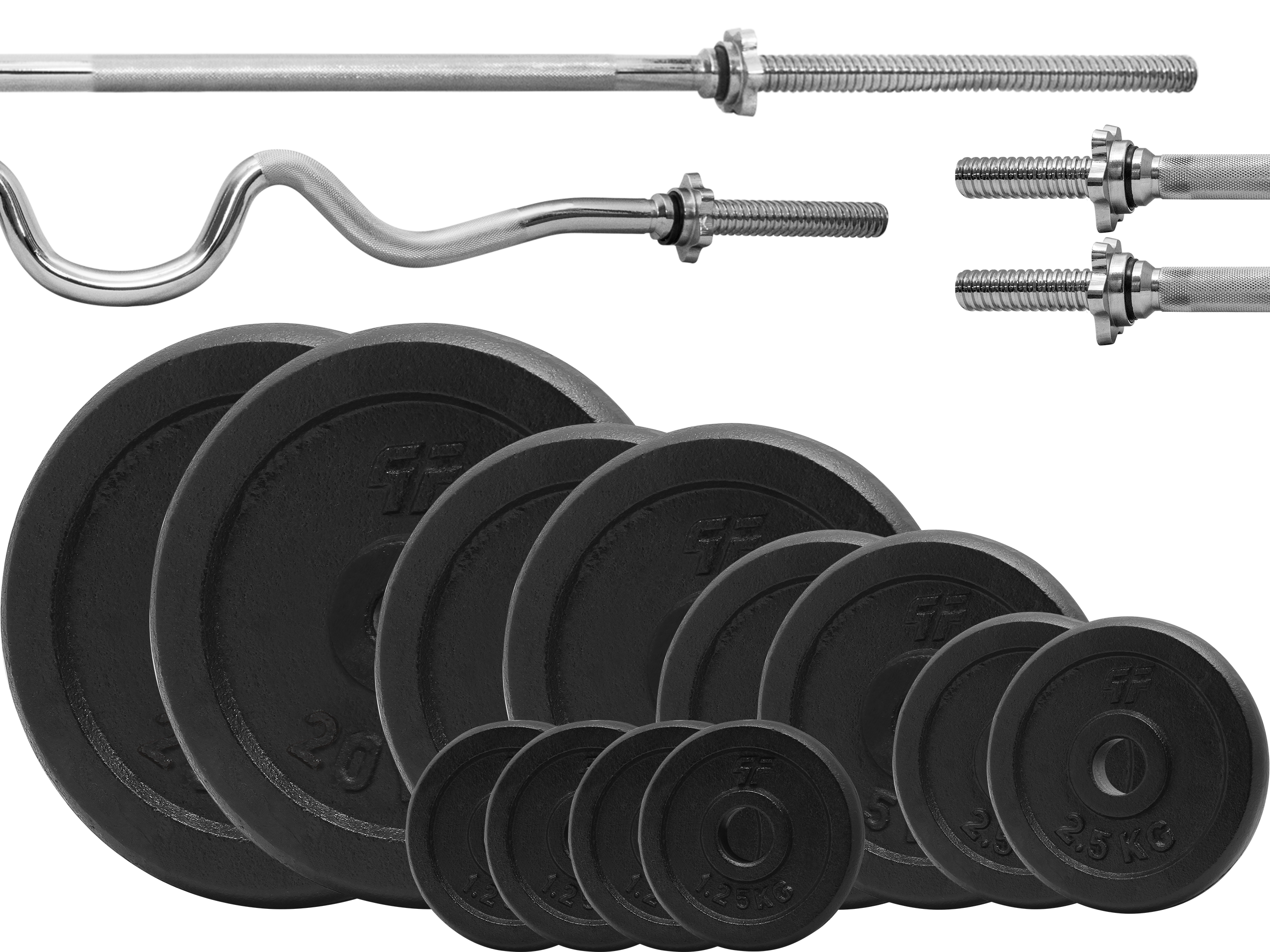 Zestaw obciążenie żeliwne pełne 96kg (4x10kg, 4x5kg, 4x2,5kg, 4x1,25kg) 29mm + 4 Gryfy
